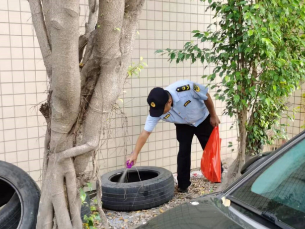 值得一提的是,各街道还结合辖区实际,探索出各具特色的整治路径。金龙街道发动社区热心居民组建卫生督导队,对背街小巷、闲置房屋等开展日常巡查反馈,同步启用无人机空中消杀,对重点区域“无接触、高效能”覆盖;常泰街道针对辖区内汽车4S店较多、露天堆积轮胎易积水孳生蚊虫的情况,制定“清理+防孳”双目标方案,组织人员逐店走访,协助企业分类处置轮胎、防积水,破解卫生死角反弹难题。