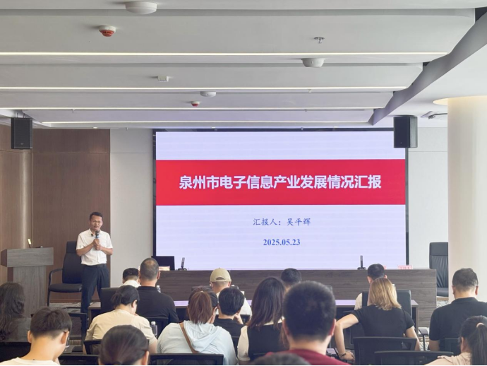 随后,泉州师范学院教授吴平辉老师为与会者们深入剖析了泉州市当前电子信息产业发展情况,指出当前产业传统领域优势与发展瓶颈,以及未来产业链延伸、空间布局优化、强化创新与人才支撑等产业升级路径。