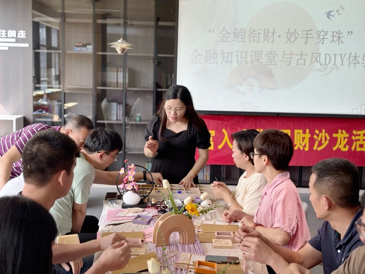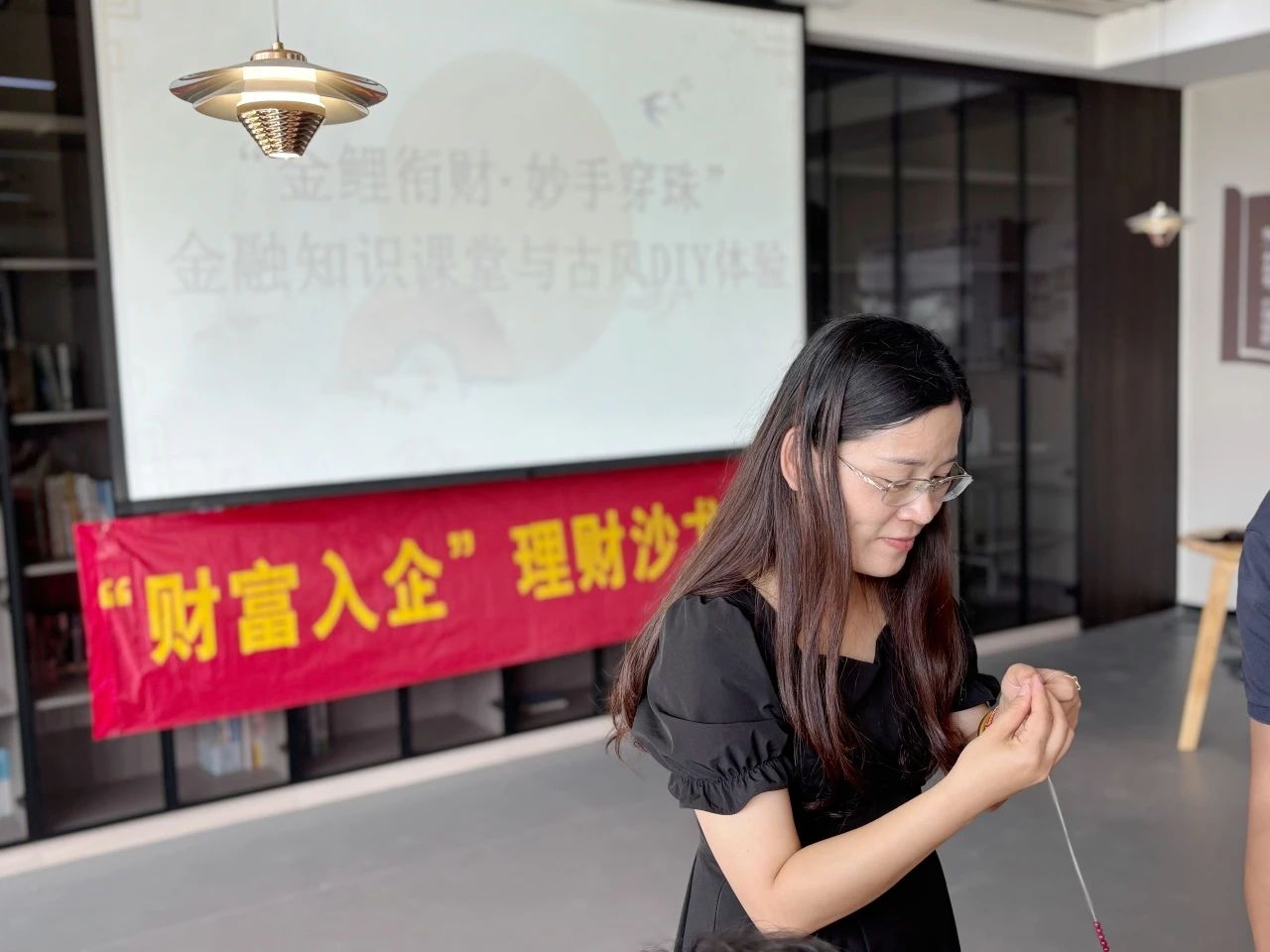 为深化政银协同发展,助力区域经济与文化融合发展,6月13日,炸金花app高新区管委会联合伙伴银行兴业银行炸金花app支行在高新区人才创享中心举办“金鲤衔财 妙手穿珠”金融知识课堂与古风DIY体验活动,以“文化体验+金融服务”的创新形式,为园区职工、人才搭建起寓教于乐的互动平台。