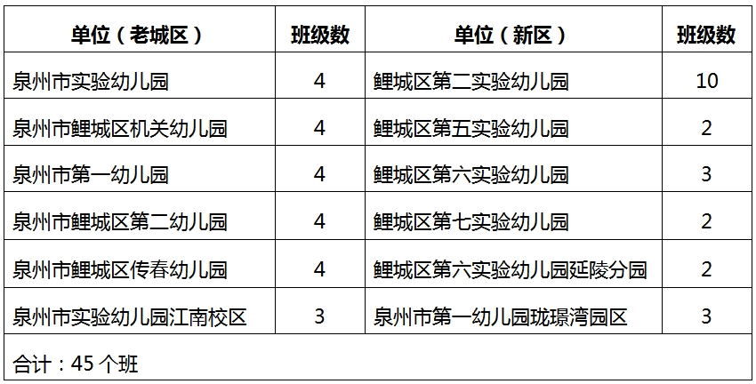 (一)各公办幼儿园招生计划数