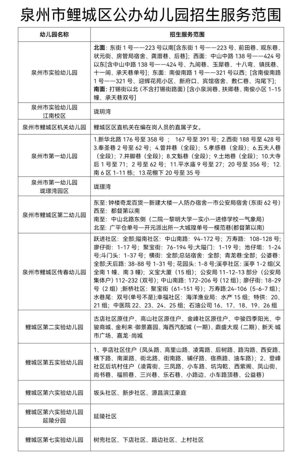 (二)各公办幼儿园招生范围