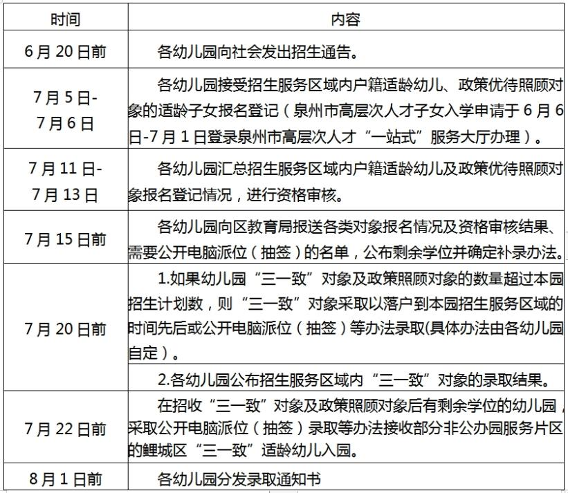 6月20日前,各集体办幼儿园、民办幼儿园向社会发出招生通告开始招生,招生结果于8月25日前送区教育局备案。
