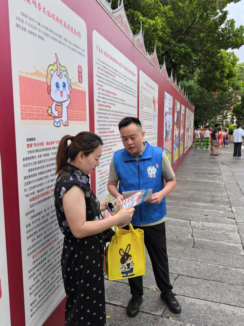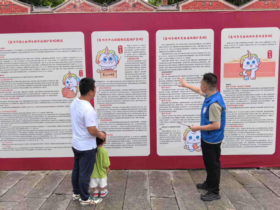 活动现场,区司法局工作人员通过设立普法宣传展板、发放普法宣传资料、开展互动游戏等多种形式,结合辖区历史文化的特色,普及了《泉州市海上丝绸之路史迹保护条例》《泉州市中山路骑楼建筑保护条例》《“泉州:宋元中国的世界海洋商贸中心”世界遗产保护管理条例》等与世遗古城密切相关的地方性法规,进一步增强了群众文化遗产保护意识,提高了公众参与文化遗产保护的积极性,营造了浓厚的法治宣传氛围,本次活动共发放宣传资料200余份,答疑解惑20余人次。
