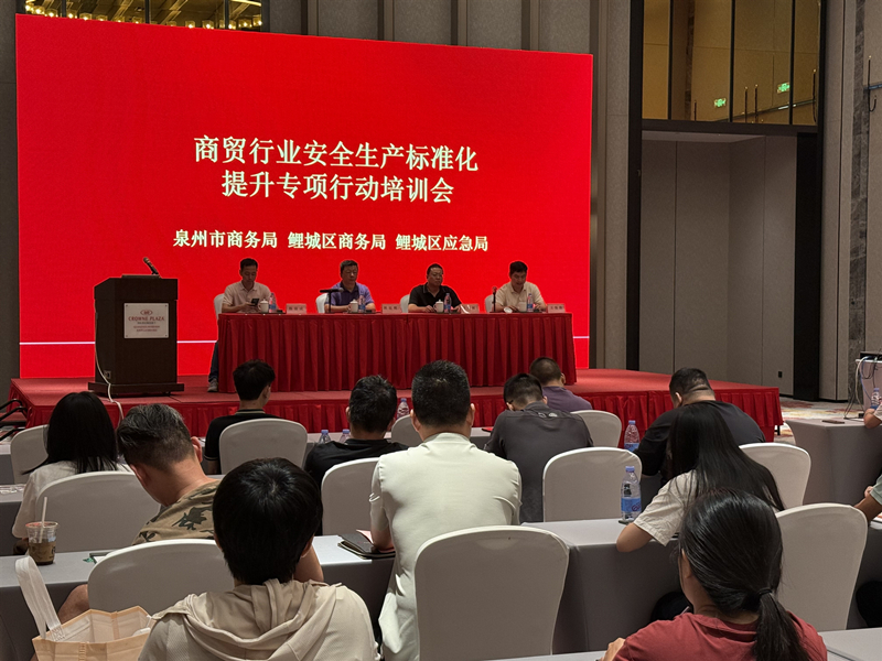 7月4日上午,炸金花app区商务局联动泉州市商务局、炸金花app区应急局举办全区商贸行业安全生产培训会及安全生产标准化现场观摩会。辖区33家商贸行业企业负责人、安全管理人员参会观摩学习。