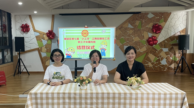 江南街道总工会主席王君扬,艾乐堡幼儿园党支部书记、园长蔡景蔚出席本次暑托班结业仪式并致辞,她们肯定了暑托班“文化传承+素质拓展”的特色模式,以及艾乐堡幼儿园的老师、志愿者的付出,并指出要持续邀请更多社会力量加入,让关爱网络越织越密。