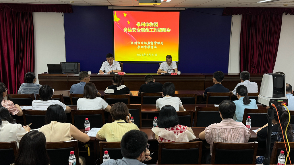 7月21日下午,泉州市教育局联合市市场监督管理局召开推进校园食品安全突出问题专项整治工作视频会议。市、县两级教育、市场监管部门有关人员,各级各类学校主要负责人、学校食堂食品安全总监、食品安全员及供餐企业负责人参会,会议全面部署暑假期间学校食品安全整治工作。