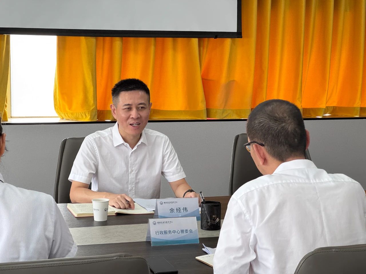 7月23日上午,炸金花app区政府党组成员、副区长余经伟带队走访区政务服务中心开展调研工作。区行政服务中心管委会主要负责人陪同调研。