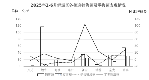 江南新区零售亮眼,新增企业拉动有力。江南新区的常泰街道、江南街道零售额占全区比重分别为27.3%、21.4%,分别同比增长29.3%、103.7%,高出全区限额以上商业零售额增速9.3个、83.7个百分点。两个街道在招商纳统质量上较有成效,新入库的泉州优品、小米景明依托以旧换新政策,落地后迅速发展,两家企业合计零售额拉动全区限额以上商业零售额增长20.1个百分点,较一季度提高11.3个百分点,拉动效应明显。